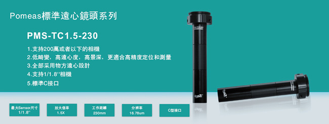 PMS-TC1.5-230视觉系统标准远心镜头规格参数:
