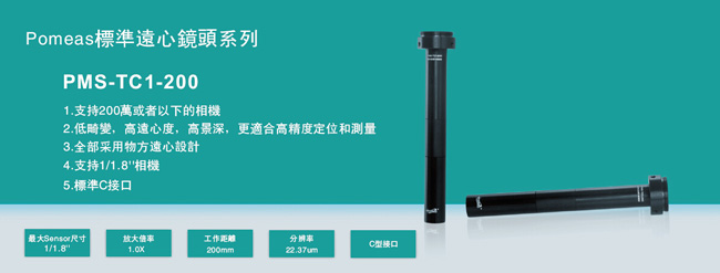 标准C型接口远心镜头PMS-TC1-200规格参数: