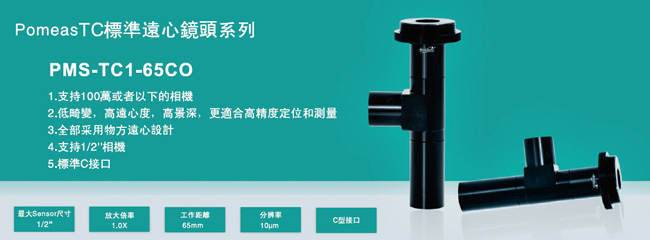 标准同轴远心镜头PMS-TC1-65CO规格参数: