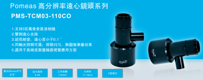 高分辨率同轴远心镜头PMS-TCM03-110CO规格参数: