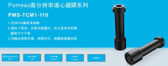 高分辨率远心镜头PMS-TCM1-110规格参数: